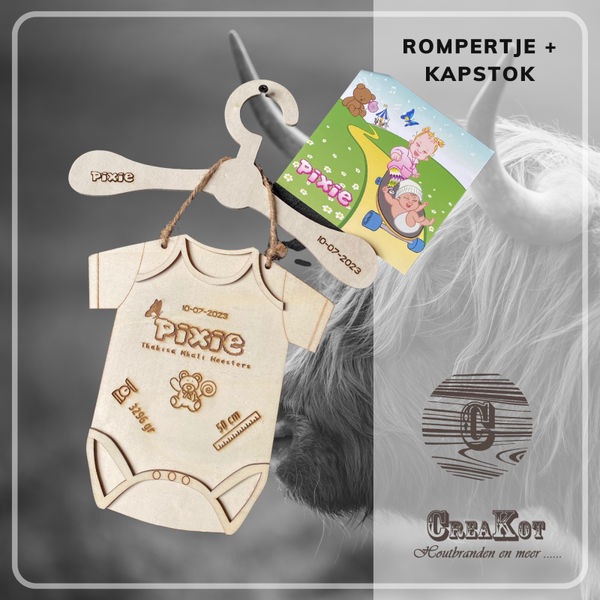 Baby romper + kapstok, leuk kraamcadeau !
