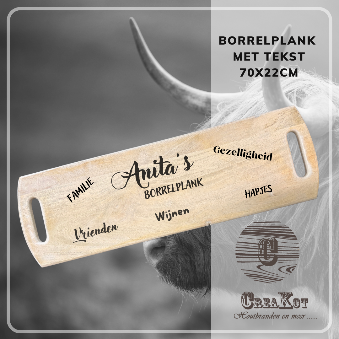 Afmeting plank : 70x22cm lang incl. handvaten.